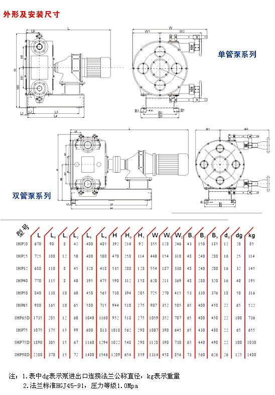 軟管泵的外形及安裝尺寸